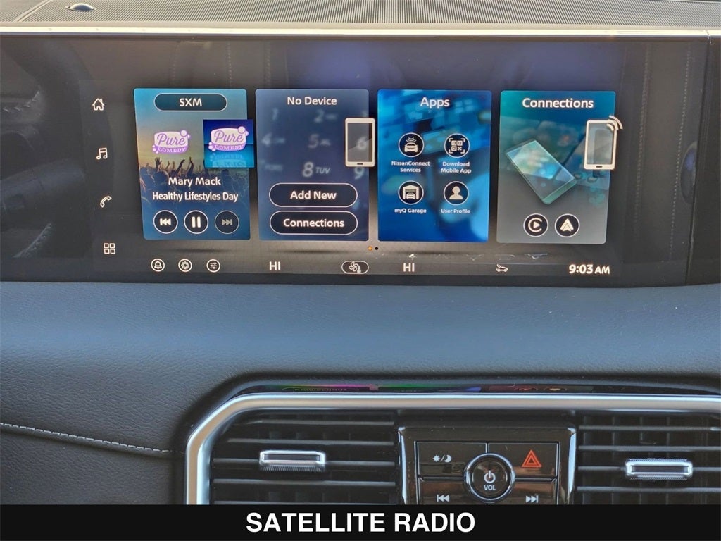 - Radio: NissanConnect w/SiriusXM 360L -inc: 6 speakers w/advanced audio features, 12.3" center touch-screen display, wireless Apple CarPlay and Android Auto, Bluetooth® hands-free phone system, Siri Eyes Free, hybrid radio, 5G capability, 2 USB type-C connection ports in front, Amazon Alexa w/Hotword, voice recognition and system controlled navigation w/traffic information