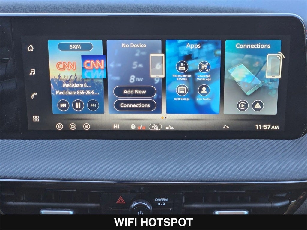 - Radio: AM/FM/SiriusXM Audio System -inc: 12.3" color touchscreen display w/6 speakers, Bluetooth® hands-free phone system, streaming audio via Bluetooth®, NissanConnect Services powered by SiriusXM featuring wireless Apple CarPlay, wireless Android Auto, Siri eyes free and hands-free text messaging assistant, audio and Bluetooth® steering wheel switches and Wi-Fi hotspot