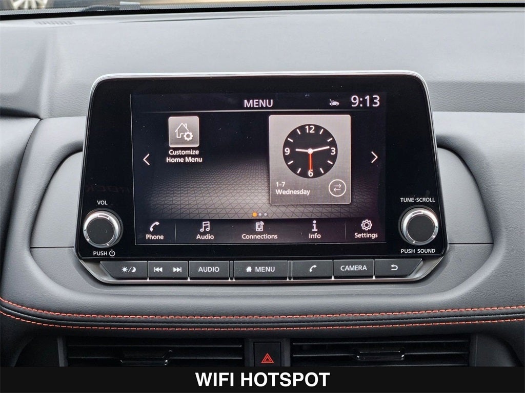 - Radio: AM/FM NissanConnect -inc: 6 speakers plus 2 tweeters, Apple CarPlay, Android Auto, 8" color touch screen display, Bluetooth®, 2 front USB type-C, Wi-Fi hotspot and NissanConnect Services powered by SiriusXM