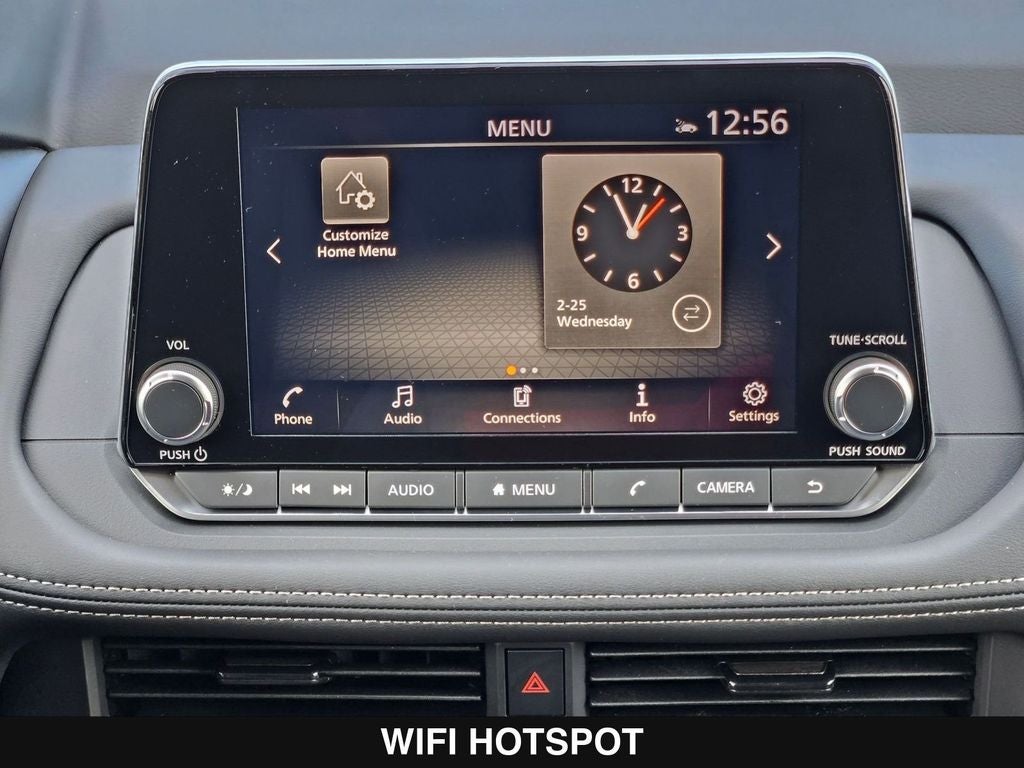 - Radio: AM/FM NissanConnect -inc: 6 speakers plus 2 tweeters, Apple CarPlay, Android Auto, 8" color touch screen display, Bluetooth®, 2 front USB type-C, Wi-Fi hotspot and NissanConnect Services powered by SiriusXM