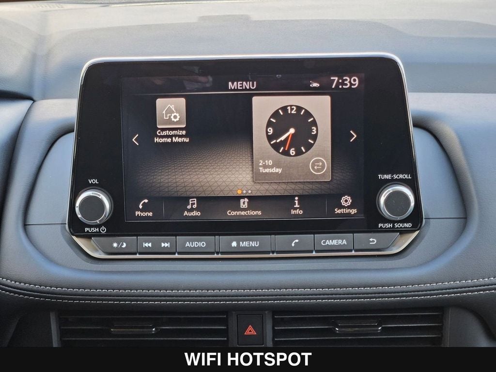 - Radio: AM/FM NissanConnect -inc: 6 speakers plus 2 tweeters, Apple CarPlay, Android Auto, 8" color touch screen display, Bluetooth®, 2 front USB type-C, Wi-Fi hotspot and NissanConnect Services powered by SiriusXM