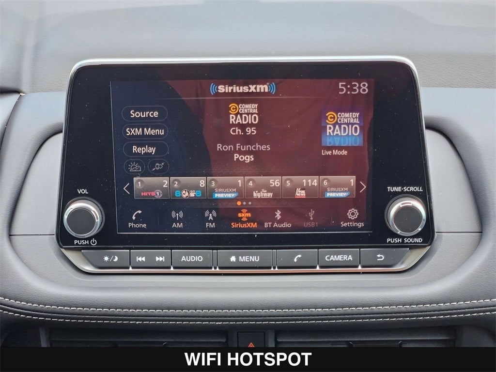 - Radio: AM/FM NissanConnect -inc: 6 speakers plus 2 tweeters, Apple CarPlay, Android Auto, 8" color touch screen display, Bluetooth®, 2 front USB type-C, Wi-Fi hotspot and NissanConnect Services powered by SiriusXM