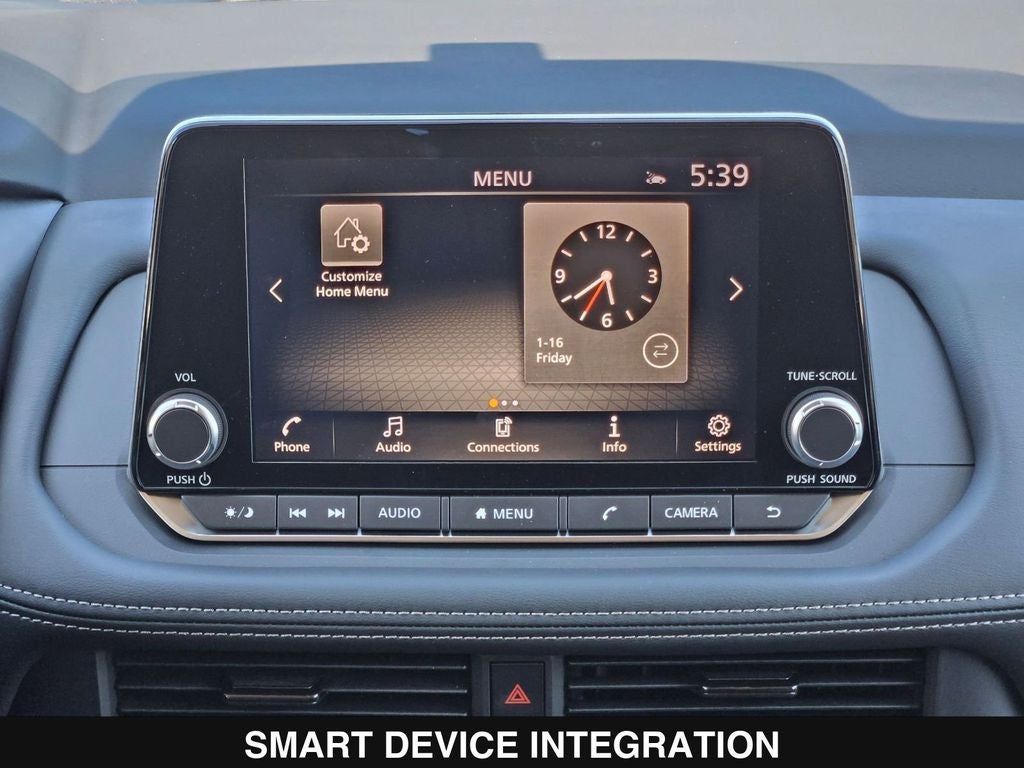 - Radio: AM/FM NissanConnect -inc: 6 speakers plus 2 tweeters, Apple CarPlay, Android Auto, 8" color touch screen display, Bluetooth®, 2 front USB type-C, Wi-Fi hotspot and NissanConnect Services powered by SiriusXM