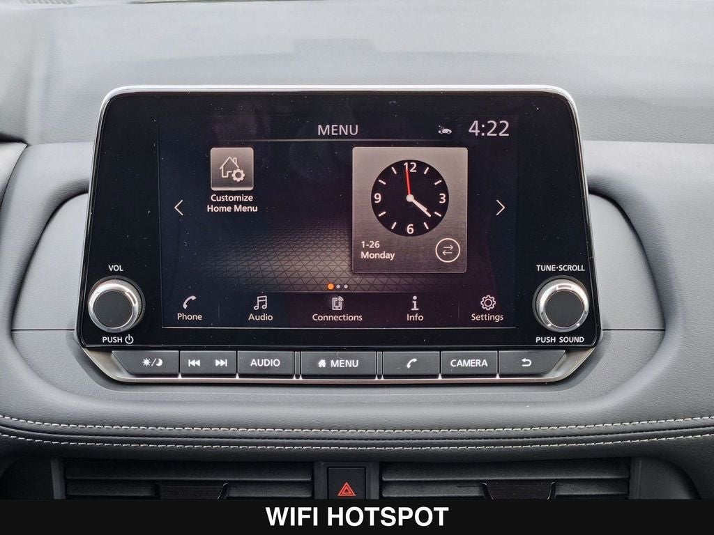 - Radio: AM/FM NissanConnect -inc: 6 speakers plus 2 tweeters, Apple CarPlay, Android Auto, 8" color touch screen display, Bluetooth®, 2 front USB type-C, Wi-Fi hotspot and NissanConnect Services powered by SiriusXM