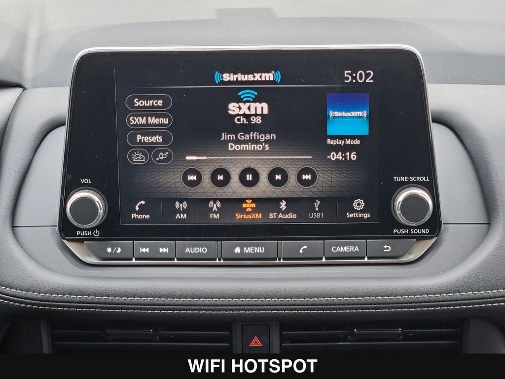 - Radio: AM/FM NissanConnect -inc: 6 speakers plus 2 tweeters, Apple CarPlay, Android Auto, 8" color touch screen display, Bluetooth®, 2 front USB type-C, Wi-Fi hotspot and NissanConnect Services powered by SiriusXM