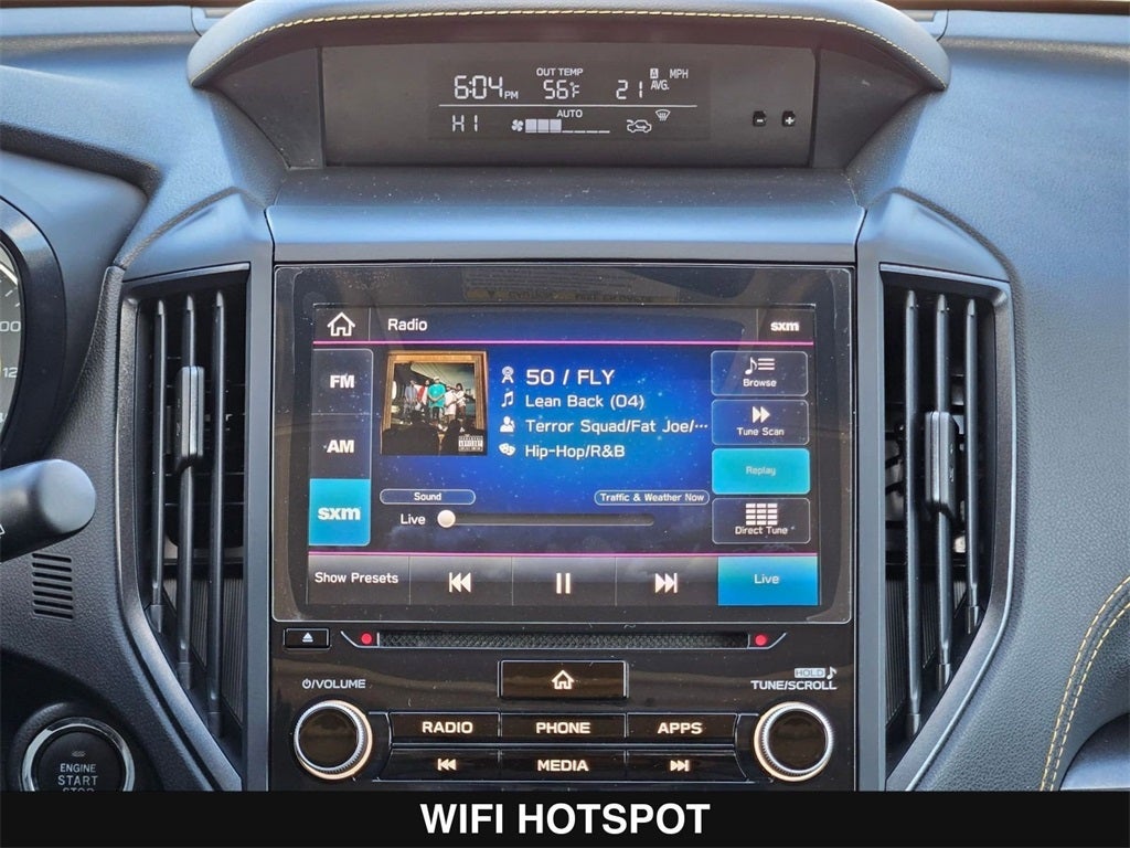 - Radio: Subaru STARLINK 6.5" Multimedia Plus System -inc: AM/FM stereo, HD Radio, single disc CD player w/MP3/WMA/CRR/RW file capability, multi-touch gesture high resolution display screen, voice activated controls, Bluetooth® audio streaming and hands-free phone connectivity, Bluetooth® hands-free SMS text messaging connectivity, iPod control capability, SiriusXM All Access Radio (4 months free trial/subscription required after), SiriusXM Travel Link (4 months free trial/subscription required after), smartphone integration: AHA, Android Auto, CarPlay, Pandora and STARLINK cloud applications, USB audio system, 6 speakers (2 dash panel tweeter, 2 front door and 2 rear door), 3.5mm auxiliary input jack, dual USB input/charge ports and roof mounted audio, satellite and connected services antenna