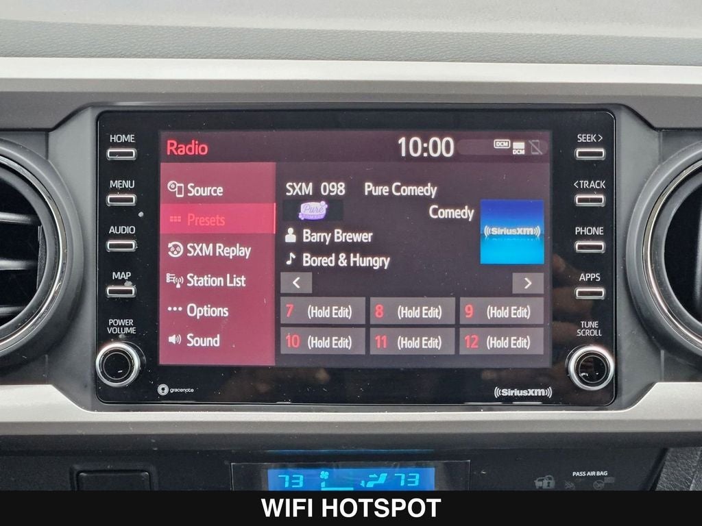 The exterior of this Tacoma exudes a bold and rugged presence, thanks to the Black Out Package that includes stylish dark gray alloy wheels and blacked-out exterior accents. Whether you're navigating the urban jungle or conquering the great outdoors, this truck is sure to turn heads and command attention.