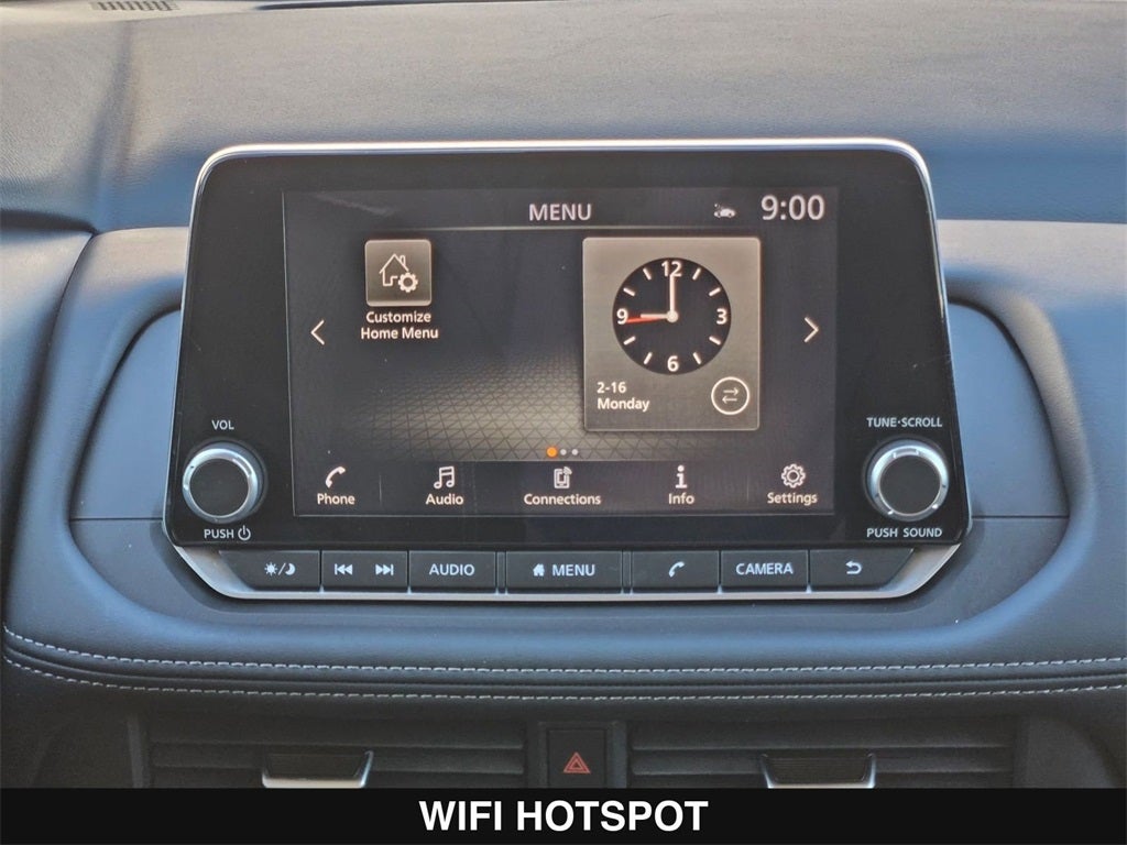 - Radio: AM/FM NissanConnect -inc: 6 speakers plus 2 tweeters, Apple CarPlay, Android Auto, 8" color touch screen display, Bluetooth®, 2 front USB type-C, Wi-Fi hotspot and NissanConnect Services powered by SiriusXM